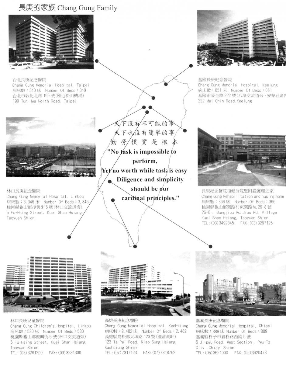 สำหรับโรงพยาบาลที่ผมได้ไปทำงานอยู่คือ โรงพยาบาลฉางกัง (Chang Gung Memorial Hospital) ซึ่งกล่าวได้ว่าเป็นโรงพยาบาลที่มีขนาดใหญ่ที่สุดของประเทศไต้หวัน มีทั้งหมด 5 แห่งทั่วประเทศซึ่งถ้ารวมกันทุกโรงพยาบาลในเครือแล้วก็จะมีขนาดกว่า 9,000 เตียงเลยทีเดียว. โรงพยาบาลฉางกังก่อตั้งมาเพียงสามสิบปีแต่ในปัจจุบันได้พัฒนาจนเป็นโรงพยาบาลที่มีชื่อเสียงเป็นที่ยอมรับอย่างกว้างขวางในระดับเอเชียและระดับโลก ซึ่งสาขาที่มีชื่อเสียงที่สุดสาขาหนึ่งก็คือทางด้านศัลยกรรมตกแต่ง (plastic surgery) โดยเฉพาะทางสาขาย่อยด้านจุลยศัลยกรรม (microsurgery) และศัลยกรรมกะโหลกศีรษะและกระดูกใบหน้า (craniofacial surgery) ที่มีผลงานทางวิชาการตีพิมพ์ในวารสารทางการแพทย์ชั้นนำของโลกเป็นจำนวนมาก. ทุกปีจะมีแพทย์จากทั่วโลกโดยเฉพาะจากทางยุโรปและอเมริกาแข่งขันกันสมัครในตำแหน่งของแพทย์ผู้ช่วยอาจารย์ (fellow) เป็นจำนวนถึง 40-50 ราย ซึ่งต้องถือมีการแข่งขันกันสูงมากทีเดียวสำหรับสถาบันฝึกอบรมทางด้านศัลยกรรมตกแต่งด้วยกัน. นอกจาก นี้ยังมีศัลยแพทย์อีกมากมายจากประเทศในเกือบทุกทวีปมาดูงานระยะสั้นกันอีกตลอดปี ซึ่งเมื่อได้ศึกษาประวัติความเป็นมาของโรงพยาบาลนี้แล้ว ยิ่งต้องทึ่งในความสามารถของเขาขึ้นอีกมาก.