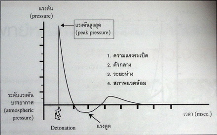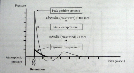ภาพที่ 3. การบาดเจ็บขั้นสามจากลมระเบิด (blast wind) แรงดัน (pressure) วัดเป็นเท่าตัวของ