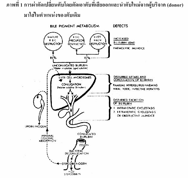1.1 Orthotopic liver transplantation (OLT) เป็นการผ่าตัดเปลี่ยนตับโดยตัดเอาตับที่เสียออกและนำตับใหม่จากผู้บริจาค (donor) มาใส่ในตำแหน่งของตับเดิม (ดังภาพที่ 1)