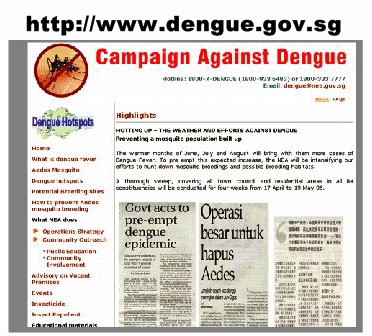 ส่วนอีกเว็บไซต์เป็นของประเทศเพื่อนบ้าน (สิงคโปร์) ที่มีข้อมูลลักษณะคล้ายกันและสามารถ เชื่อมไปยัง webpages เรื่องไข้เลือดออกของ WHO และ CDC ได้โดยตรง.