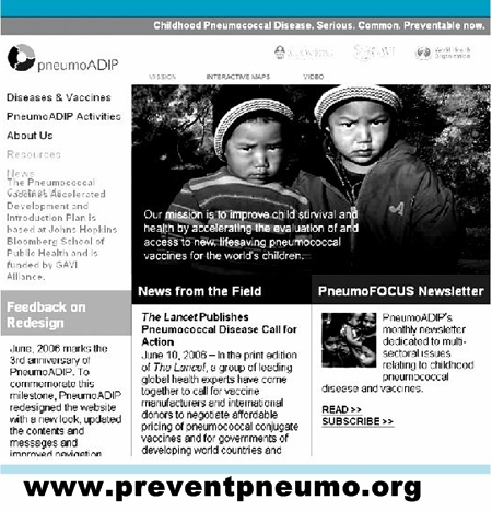 เว็บไซต์แห่งนี้ดำเนินงานโดย Johns Hopkins Bloomberg School of Public Health และได้รับการสนับสนุนงบประมาณจำนวน 30 ล้านเหรียญ สหรัฐจาก Global Alliance for Vaccines and Immunization เพื่อมุ่งหวังให้เกิดการป้องกันหรือกำจัดโรค pneumococcal ในประเทศต่างๆ ทั่วโลก.