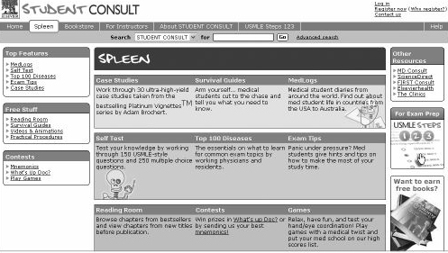 " คลินิก " มีสมาชิกและผู้สนใจที่เป็นนิสิตนักศึกษาแพทย์อยู่พอสมควร ดังนั้นวารสารฉบับนี้จึงขอเสนอเว็บไซต์ที่คิดว่าจะมีประโยชน์ไม่มากก็น้อย สำหรับนักเรียนแพทย์ เว็บไซต์ดังกล่าวคือ www.studentconsult.com< โดยเริ่มจากการลงทะเบียนเป็นสมาชิกที่ไม่ต้องเสียค่าใช้จ่ายแต่อย่างใด เมื่อเป็นสมาชิกแล้วก็ log in เข้าไปดู ที่น่าสนใจคือ webpage ที่ชื่อ www.studentconsult.com/spleen/< ที่มีสาระต่างๆ ดังนี้