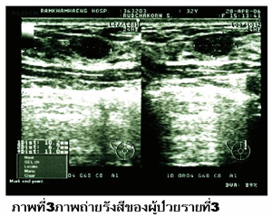 หญิงไทยโสดอายุ 25 ปี คลำพบก้อนที่เต้านมขวามานาน 1 เดือน. การตรวจภาพถ่ายทางรังสีปรากฏดังภาพที่ 3.