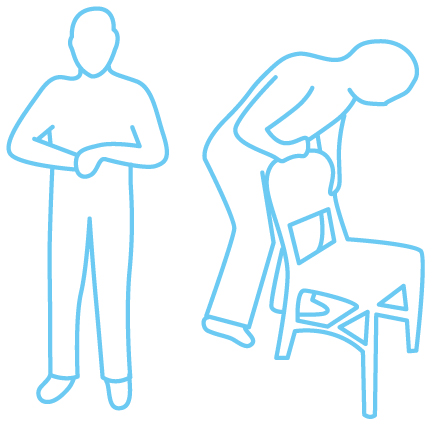 - ก้มตัวลงแรงๆ เพื่อกระแทกหมัดอัดเข้าท้องในลักษณะดันขึ้นข้างบน ทำซ้ำๆ หลายๆ ครั้ง จนกว่าสิ่งแปลกปลอมหลุด.