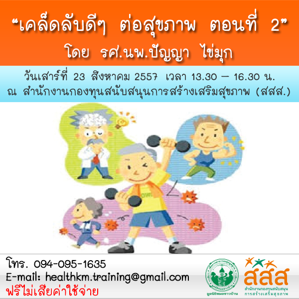 ขอเชิญเข้าร่วมอบรม "เคล็ดลับดีๆ ต่อสุขภาพ ตอนที่ 2"