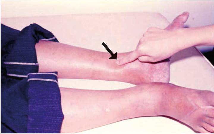 ถ้าอยู่ๆ มีอาการตึงๆ หนักๆ ที่เท้า และอาจมีน้ำหนักตัวขึ้นโดยไม่ทราบสาเหตุ ให้สงสัยเป็นอาการเท้าบวม เราสามารถตรวจดูง่ายๆ ด้วยการใช้นิ้วมือกดลงหลังเท้า ตาตุ่มหรือหน้าแข้ง นาน 1/2-1 นาที จะพบมีรอยบุ๋มตรงบริเวณที่กดอยู่นาน