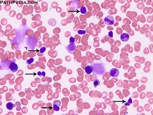การตรวจไขกระดูกจะพบเซลล์ตัวอ่อนจำนวนมาก
